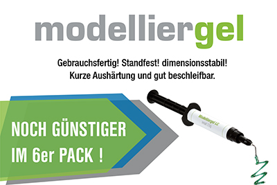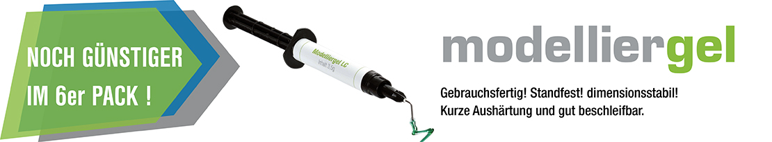 Gebrauchsfertiges, lichthärtendes Modellier-Kunststoffgel.