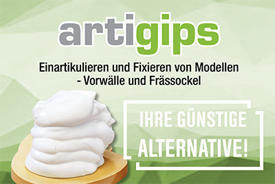 Kombinierbar mit konventionellen Wachsen oder lichthärtendem Wachs, lange Verarbeitungszeit, spannungsfreies Abheben der Modellationen. Einfache Kontrolle der Schichtstärke, präzises Auftragen